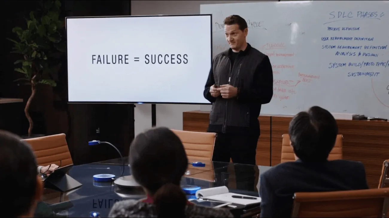 In the show Silicon Valley (on HBO), the character Gavin Belson showed a slide that read “Failure = Success”.